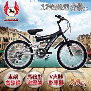 【飛馬】20吋12段變速馬鞍型雙避震車- 黑/銀