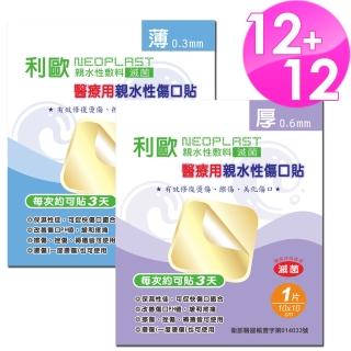 【貝斯康】醫療用敷料親水性傷口貼-滅菌(厚x12片+薄x12片)