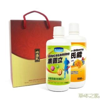 【草本之家】素固立葡萄糖胺液+晶氏能葉黃素液(1000ml各1瓶禮盒組)