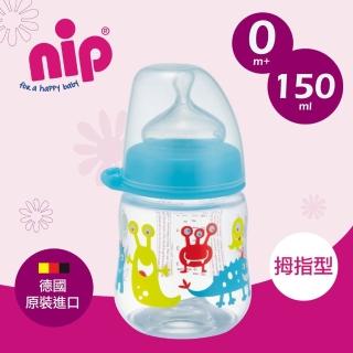 【德國 nip】寬口徑防脹氣-防脹氣拇指型PP奶瓶-150ml(藍怪獸家族-中圓洞奶嘴)