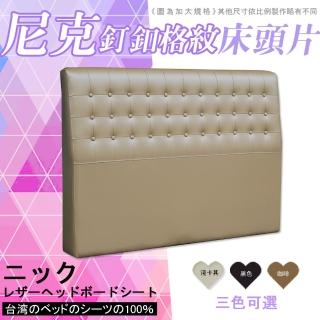 【HOME MALL-尼克釘釦格紋皮製】加大6尺床頭片(3色)