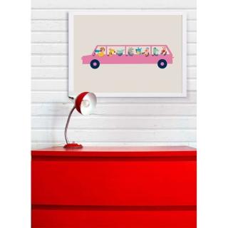 【摩達客】西班牙知名插畫家Judy Kaufmann-藝術創作海報掛畫裝飾畫-粉紅汽車(附本人簽名/含木框)