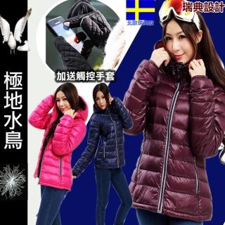 【北歐-戶外趣】贈觸控保暖手套-瑞典極地水鳥羽絨JIS90/10Extra輕量連帽外套(PL-1602三色可選-女款)