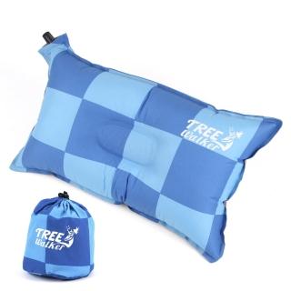 【TreeWalker】舒適自動充氣枕頭(藍色方格)