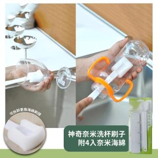 【廚房輕鬆小物】神奇奈米洗杯刷子-附4入奈米海綿(瓶刷 清潔刷 奶瓶刷 長柄刷 海綿刷 可掛式 保溫杯刷)