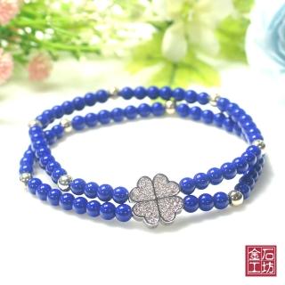 【金石工坊】閃鑽幸運草青金手鍊 4mm