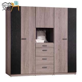 【文創集】梅琳 薰衣草7.3尺開門式衣櫃組合(三吊桿+五抽屜+開放層格)