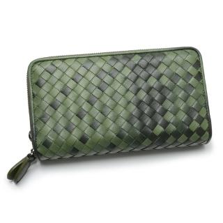 【2R手工真皮】細呢羊皮Double雙層編織長夾 海草綠