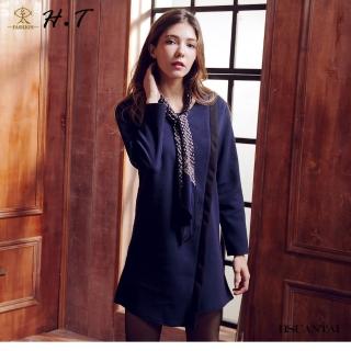 【玄太】簡約不等邊下擺拼接洋裝(藍)