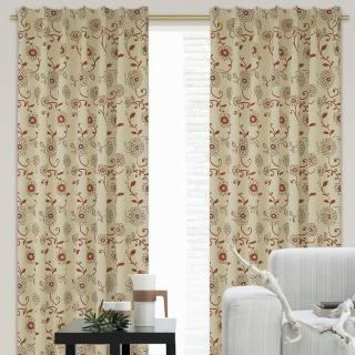 【宜欣居傢飾】春暖花開-雙面緹花遮光窗簾-紅/卡其