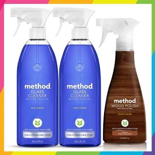 【Method 美則】好宅家俱清潔好幫手1+2件組(木質保養清潔劑414mlX1罐+玻璃清潔劑828mlX2罐)