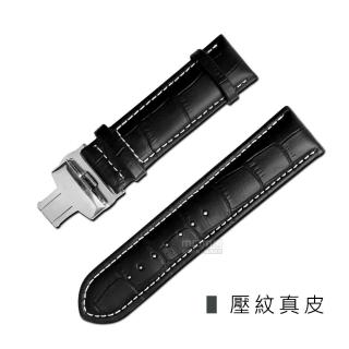 【Watchband】經典復刻時尚指標(壓紋真皮雙邊壓扣錶帶 黑x白x銀扣)