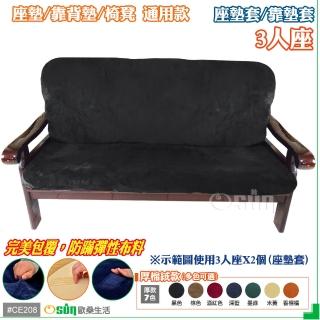 【Osun】厚綿絨防蹣彈性沙發座墊套/靠墊套(黑色3人座二入1組 CE208)