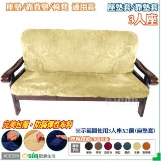 【Osun】厚綿絨防蹣彈性沙發座墊套/靠墊套(米黃色3人座 CE208)