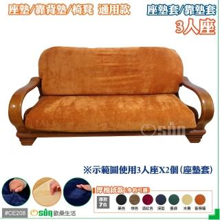 【Osun】厚綿絨防蹣彈性沙發座墊套/靠墊套(香檳橘3人座 CE208)