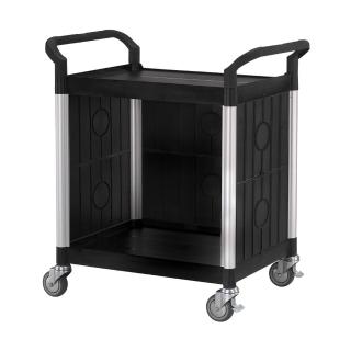 【100%台灣製】標準多功能二層三面圍邊工具餐車/手推車/置物架(經典黑)