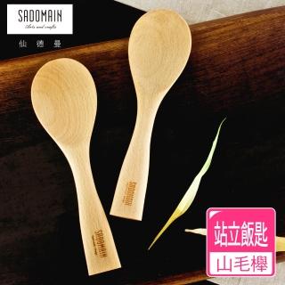 【仙德曼 SADOMAIN】山毛櫸原木餐具站立飯匙 2入組(廚房餐具/露營用品/料理盤/原木餐具/飯匙)