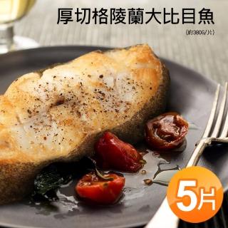 【優鮮配】厚切格陵蘭大比目魚5片(約380g/片)