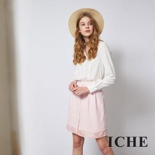 【ICHE 衣哲】微甜粉嫩拼接蕾絲打褶百搭造型裙