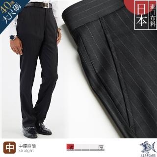 【NST Jeans】大尺碼 日本布料_經典Black細條紋 夏日男微彈羊毛西裝褲-中腰(391-6958)