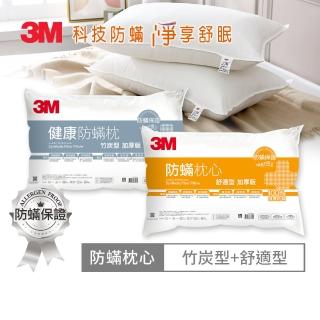 【3M】德國進口表布健康防蹣枕心-舒適型+竹炭型(超值2入組)