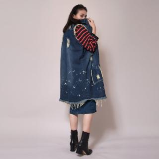 【Who Cares】率性時尚哈潑刷破長版單寧背心(背心外套)