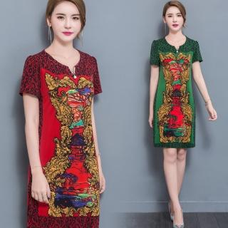 【ALICAI 艾麗彩】小V領垂掛珍珠鉤花蕾絲修身洋裝(中大碼/二色/L-5XL)