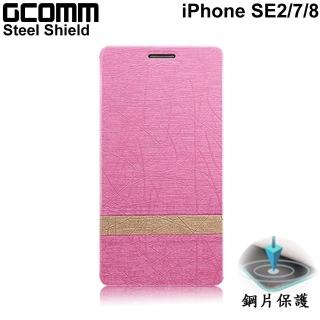 【GCOMM】iPhone SE2 8/7 Steel Shield 柳葉紋鋼片惻翻皮套(嫩粉紅 SE2)