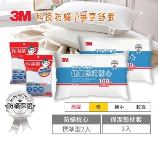 【3M】新一代標準型限量版健康防蹣枕心x2+保潔墊枕套x2(防蹣保潔超值4件組)