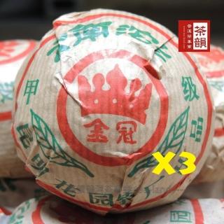 【茶韻】普洱茶2003年花園茶廠金冠甲級熟沱100g三入品藏組 茶葉禮盒(附茶樣20g.茶針x1.收藏盒x3)