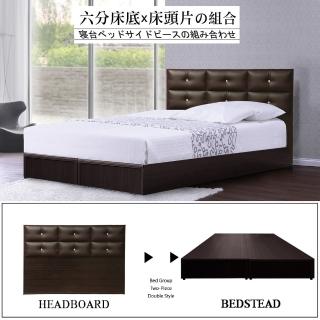 床頭片+六分床底組合,簡約格紋皮面設計,皮革結合木質造形