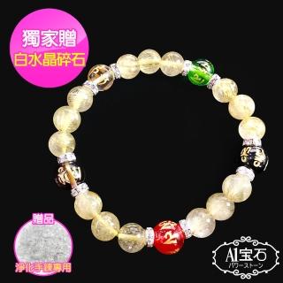 【A1寶石】開運六字箴言鈦晶晶鑽圓珠手鍊手環-能量招財旺事業貴人運(贈白水晶)