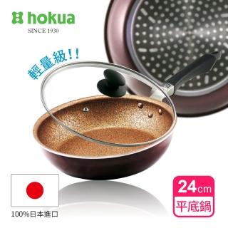 【日本北陸hokua】超耐磨輕量花崗岩不沾平底鍋24cm贈防溢鍋蓋(可用鐵鏟/不挑爐具)