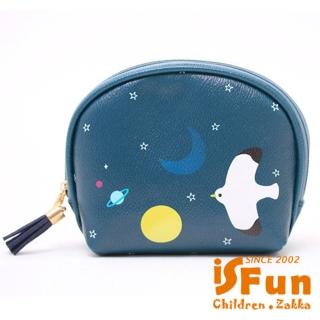 【iSPurple】可愛動物*可放手機皮革化妝收納包/深藍鳥