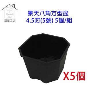 【蔬菜工坊005-D132-BL5】景天八角方型盆4.5吋-黑色-5個/組(5號)