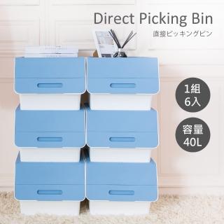 【時尚屋】青木直取式藍色可疊收納箱-6入 KW7-HB41(免運費 台灣製 收納箱)