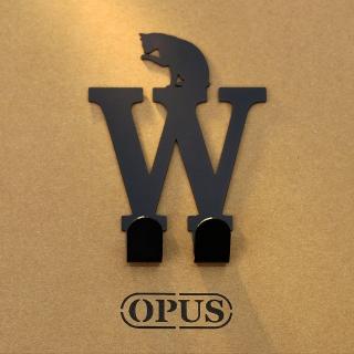【OPUS東齊金工】歐式鐵藝壁飾掛勾/無痕掛鉤/掛衣架/廚房衛浴收納(HO-ca10-WB 當貓咪遇上字母W)