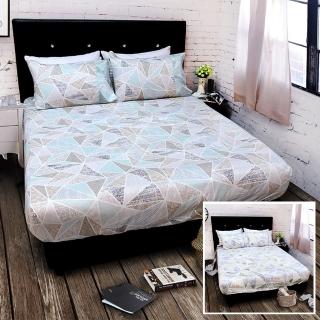 【FITNESS】精梳棉加大床包+枕套三件組- 霓虹鏡(藍色 綠色兩色可供選擇)