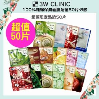 【3W CLINIC】MOMO限定 100%純棉保濕面膜50片-8款(保濕 撫紋 緊緻)