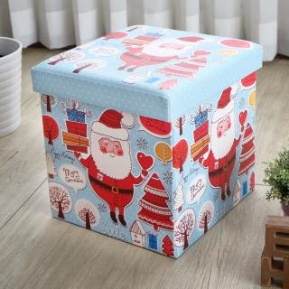 【EASY HOME】繽紛耐重摺疊收納椅凳(歡樂聖誕)