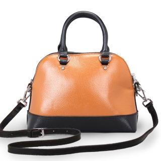 【JW】LUXE系列-真皮頭層牛皮月之里撞色手肩側貝包(蜜糖棕)