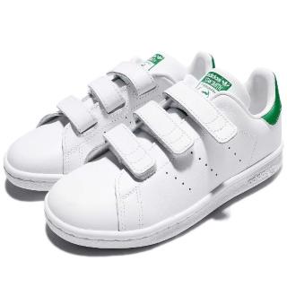 【adidas】童鞋 休閒鞋 Stan Smith CF 愛迪達 史密斯 魔鬼氈 皮革 舒適 白 綠(M20607)