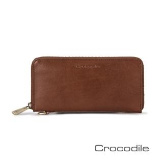 【Crocodile】鱷魚皮件 真皮錢包 15卡 拉鍊零錢包 0103-5822-黑咖紅三色(Natural系列)