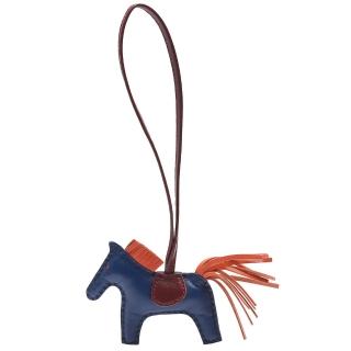 【HERMES】RODEO PM馬兒造型拼色小羊皮鑰匙圈/吊飾(迷你-海軍藍X橘H064929CA-NAVY-ORG)