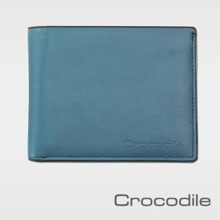 【Crocodile】鱷魚皮件 真皮 短夾 錢包 10卡 3活動式窗格 0103-08704-綠灰藍三色(Calf-Waxy系列)