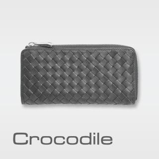 【Crocodile】鱷魚皮件 真皮 拉鍊長夾 6卡 拉鍊零錢袋 手工編織 0103-6009(Knitting系列)