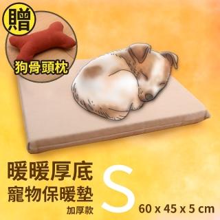 【Embrace 英柏絲】暖暖厚底寵物保暖墊 加厚款 寵物床墊 60x45 表布可洗 附小骨頭枕(咖啡-S小)