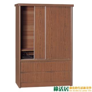 【綠活居】羅比 時尚4尺二門二抽衣櫃/收納櫃(五色可選+吊衣桿+二抽屜)