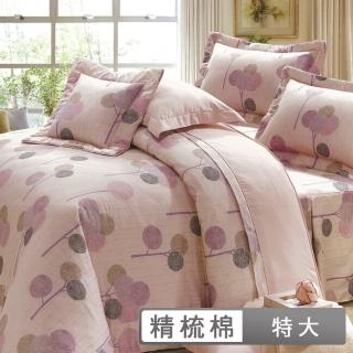 【eyah 宜雅】205織精梳純五件式兩用被床罩組 輕鬆田園-粉(特大)