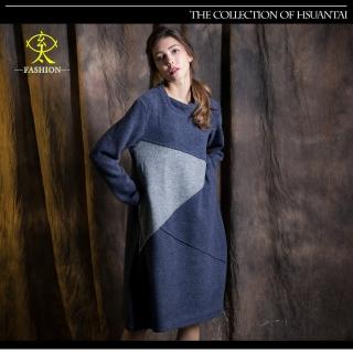 【玄太】摩登寬鬆配色長版上衣(藍)
